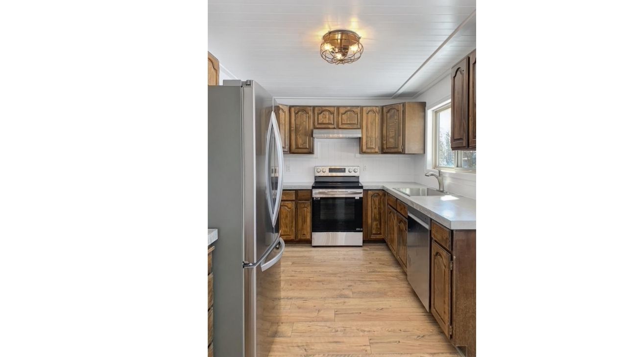 Beautifully modernized tri-level, 1,948 square feet home of thoughtfully updated living space with a convenient walk-in main floor. This 3-bedroom, 1.5-bath residence blends timeless character with sleek contemporary finishes, featuring new luxury vinyl plank flooring throughout, white shiplap ceilings, and all new light fixtures. Both bathrooms have been refreshed with updated vanities and striking shiplap accents, enhancing the home’s clean, modern aesthetic. The kitchen features stylish concrete countertops and flows seamlessly into inviting living spaces highlighted by a cozy wood-burning brick fireplace—perfect for gathering and relaxing. New window coverings in the bedrooms add comfort, privacy, and a polished finishing touch. See Supplemental Remarks for more info. Situated on nearly a half-acre lot, the property provides a rare combination of space, privacy, and a peaceful country feel—all within a well-established, quiet neighborhood. The fully fenced backyard has mature landscaping and impressive 40+ year old apple trees, a truly serene outdoor retreat. Enjoy breathtaking alpenglow views while still being centrally located to shopping, schools, and the bypass for an easy daily commute or straight shot to Big Mountain. Recent improvements include a new driveway, exterior paint, roof replacement, and a refurbished septic system, offering comfort and peace of mind for years to come. Perfect for a family home or investment opportunity. Currently being used as a rental with a outstanding rental history. This inviting home delivers modern style, generous outdoor space, and an unbeatable balance of convenience and tranquility—an exceptional opportunity in a highly desirable location.