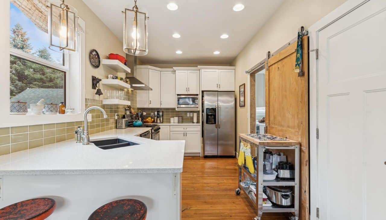 Modern Whitefish Home with Mountain Views Just steps from downtown Whitefish and the golf course, this 2014-built 3-bedroom, 3-bath home offers modern comfort and thoughtful design. The open-concept layout features hardwood floors, quartz kitchen countertops, granite bathroom finishes, and a gas range—perfect for everyday living and entertaining. Distinctive details include a sliding barn door, chalkboard accent wall, and Heath handmade tile accents in the kitchen and fireplace surround. The primary suite showcases views of Whitefish Mountain Resort, while the back porch and BBQ area provide a welcoming outdoor space. An oversized single-car garage adds convenience, and the home is available fully furnished for turn-key ownership. The adjacent 1940s bungalow at 428 W. 3rd (MLS #30058525) is also available, offering excellent potential for guest accommodations or investment use.