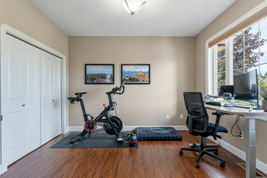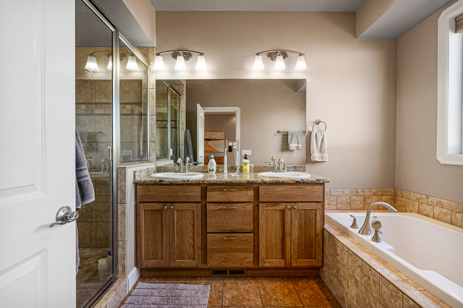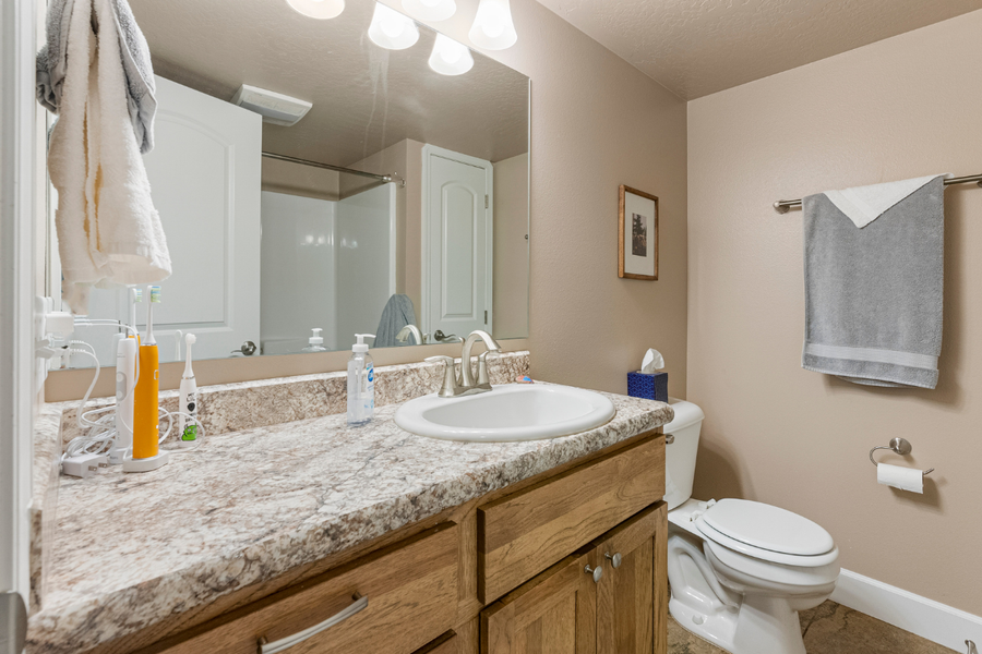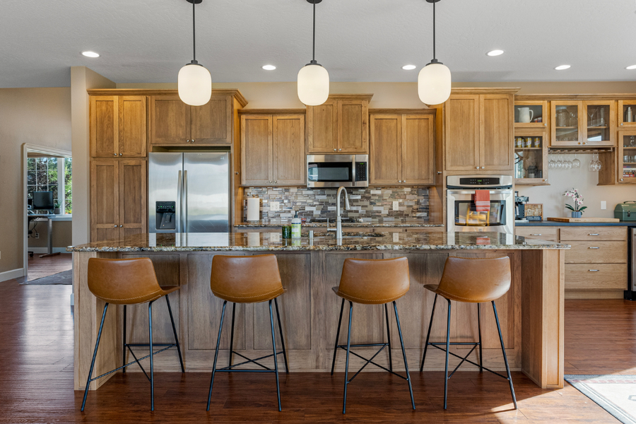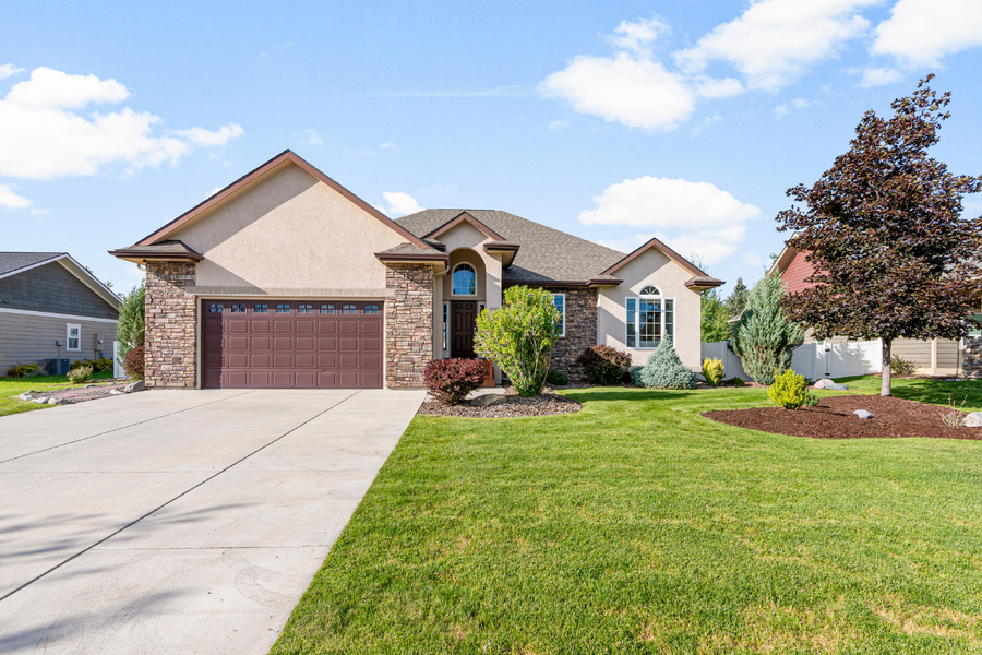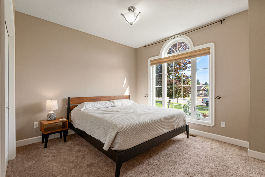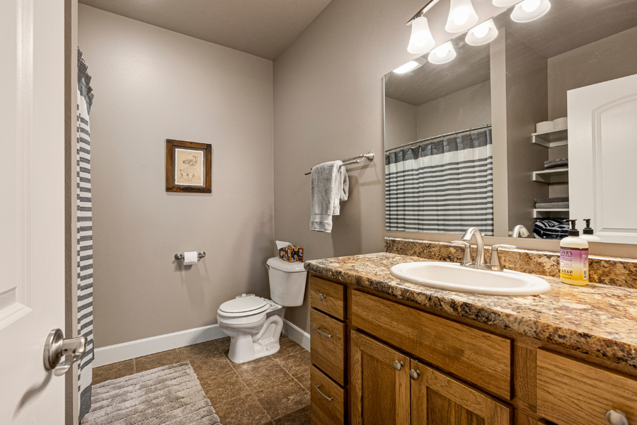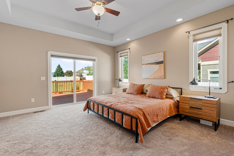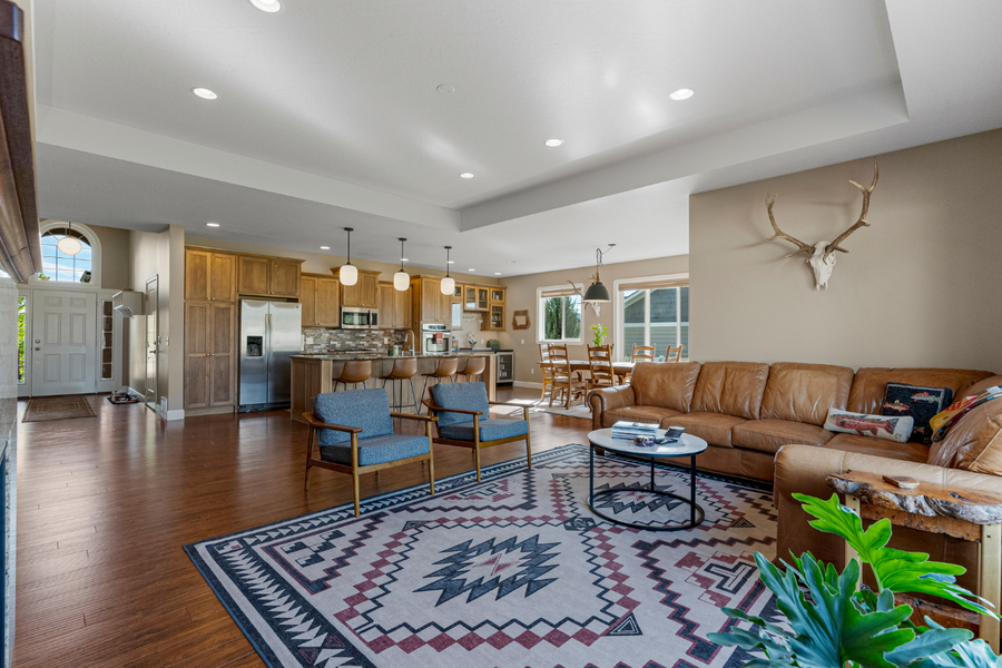 Perched atop Miller Creek on a coveted flat lot, this stunning 5-bedroom, 3-bath residence blends refined elegance with modern comfort. An open floor plan and soaring ceilings create a sense of grandeur, while oversized windows bathe each spacious room in natural light. The gourmet kitchen is a chef’s dream, featuring granite countertops, a large island perfect for entertaining, high-end appliances, and custom cabinetry. The main-level primary suite offers a private retreat with a spa-like en suite bath, complete with dual vanities, soaking tub, and walk-in shower. Step outside to a sprawling deck overlooking the beautifully landscaped yard, enclosed by a privacy fence for peaceful seclusion. Perfectly designed for gatherings or quiet mornings, this outdoor oasis complements the home’s interior flow. Walk to The Den for dinner or The Market, or enjoy the many nearby parks. With its prime location, luxurious finishes, and unbeatable layout, this Miller Creek gem is ready to welcome you home.