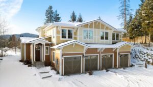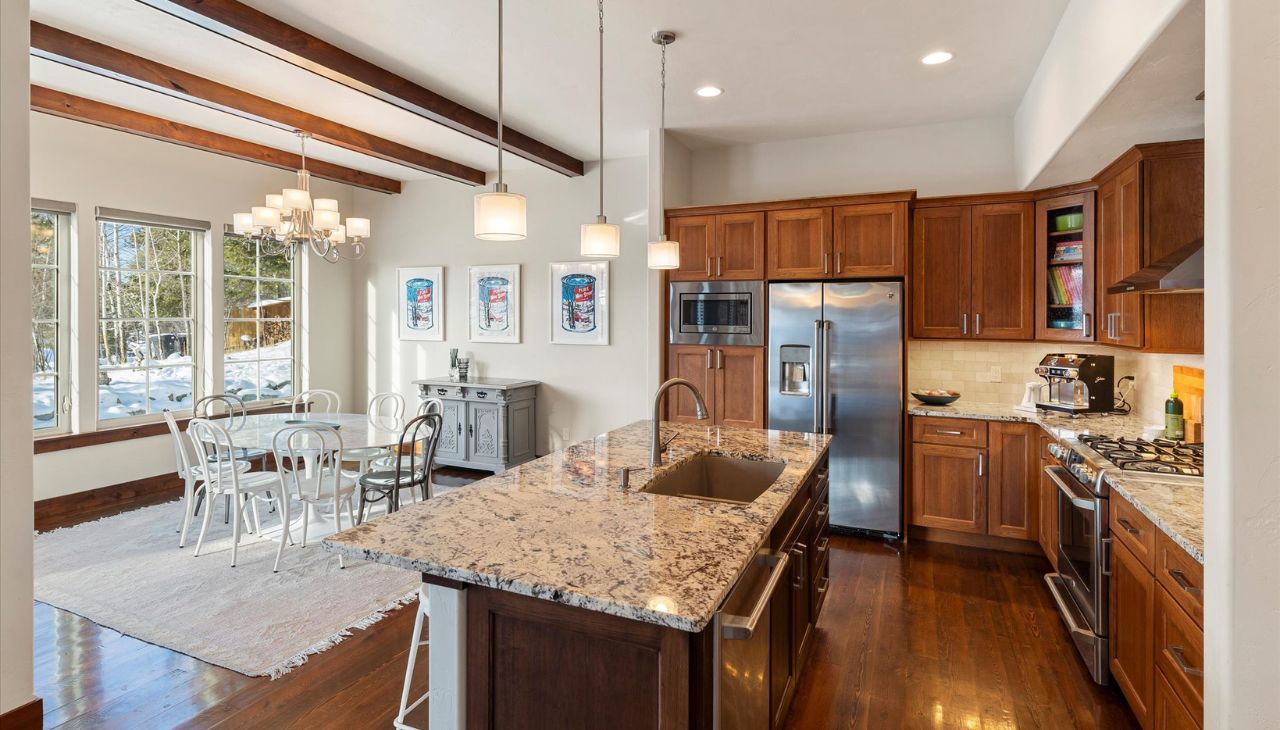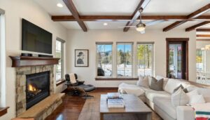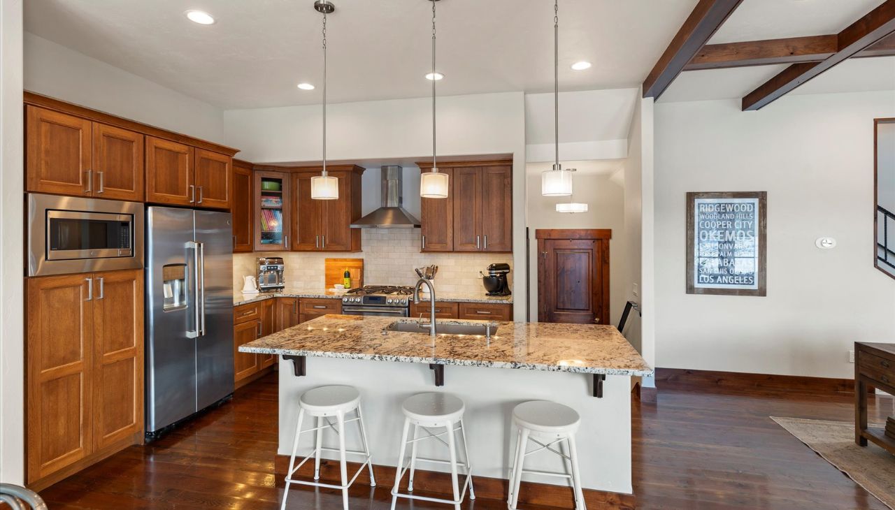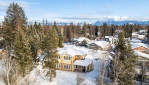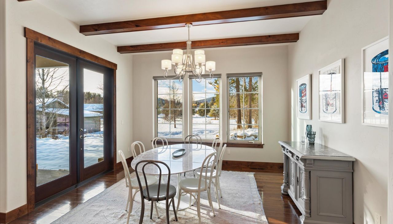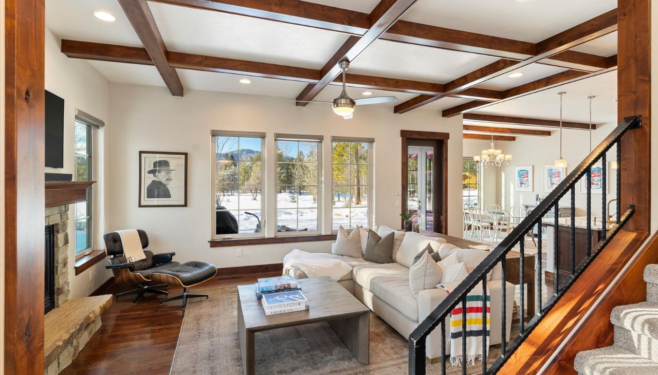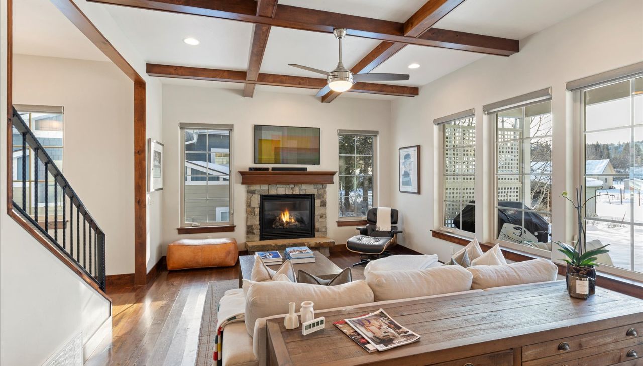 Warm, Inviting, and Ideally Located! This beautifully appointed townhome is just minutes from the heart of Whitefish, offering the perfect blend of comfort and convenience. An open and bright layout features soaring vaulted and coffered ceilings, plus expansive windows framing breathtaking views of Lion Mountain.
