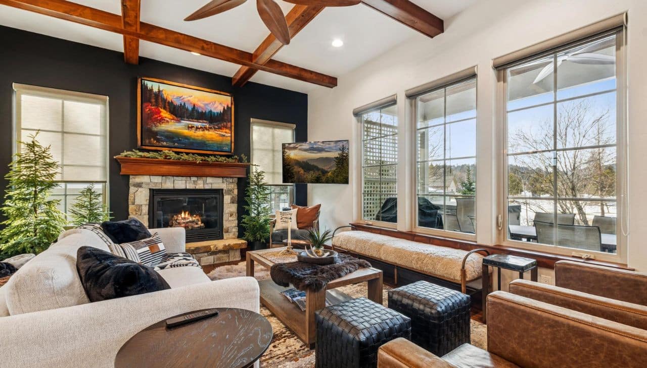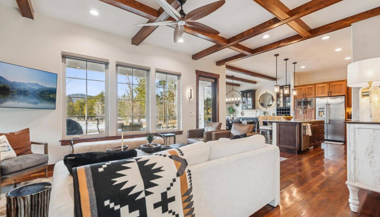 Beautifully appointed and decorated townhome offering gorgeous views, privacy, and high end finishes throughout. Relax on the newly extended patio and enjoy the sunsets from the hot tub. Features include open floor plan, coffered ceilings, a cozy fireplace, and numerous updates and remodeled entertainment area. Ideally located within walking distance to downtown Whitefish, with the ski hill just minutes away. The oversized two-car attached garage boasts extra-high ceilings and ample storage. Each bedroom has a walk-in closet and the primary bath has radiant floor heat. Truly, this 3 bedroom 2.5 bath special home you do not want to miss! Being sold with stunning furniture and turn key, with a few exclusions. Supplemental remarks list all upgrades done in 2025, and exclusion list. Recent 2025 upgrades include: premium carpeting w/ upgraded padding, custom built-in cabinets with bar, wine fridge, and desk space in entertainment area, an expanded patio with newly planted trees for privacy, hot tub, new lighting, ceiling fans, window treatments with blackout shades in bedrooms for long summer evenings, painted access walls and mural, new flooring in back entry, and enhanced garage storage. Also new in 2025: a radon mitigation system in the crawl space and a Broan Heat Recovery Ventilation (HRV) air system. Exclusions: 2 brown leather chairs in living room, ski painting in boys room, painting in corner of girls bedroom, outdoor patio set, bed in girls room but will be replaced with another bed, both sleeper chairs in two front bedrooms, gold wine opener and glass lazy Susan.