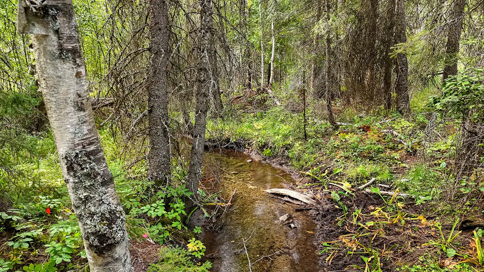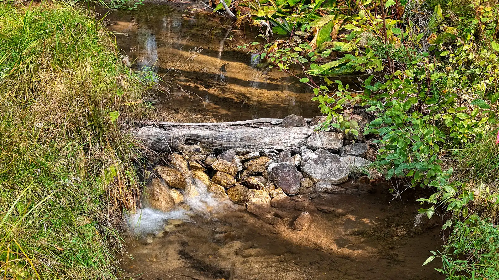 The boundary of Tamarack Meadows is created by the stream, creating topography suited to daylight level floor plans; both levels will enjoy backyard seclusion and shade from late afternoon sun.